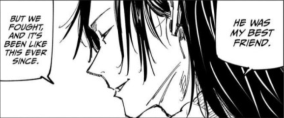 While Gojo couldn’t fathom the extent of Geto’s suffering, Yuichi Nakamura (Gojo’s voice actor) confirms that he understands how Geto reaches the radical conclusion that he did, rather than seeing a shift in their relationship his impression is that ‘ah, they end up thinking in completely different ways’ despite experiencing the same thing as their own living of that experience differs. This shows that their divergence and ‘breakup’ is not rooted in hatred and resentment (which we know because after catching up to Geto after his first mass murders, Gojo cannot bring himself to attack his friend) because Gojo doesn’t even believe his friend is being irrational, only that he cannot walk the same path because his own conclusions and views are different.